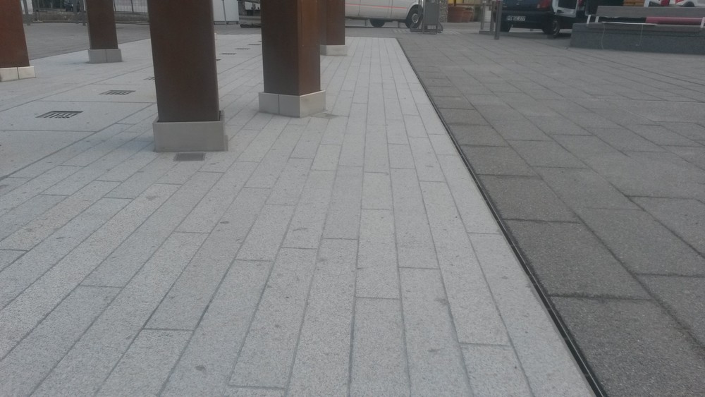 Brunnenbelag als Stabparkett aus Thansteiner Granit, kugelgestrahlt