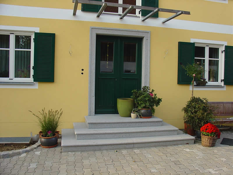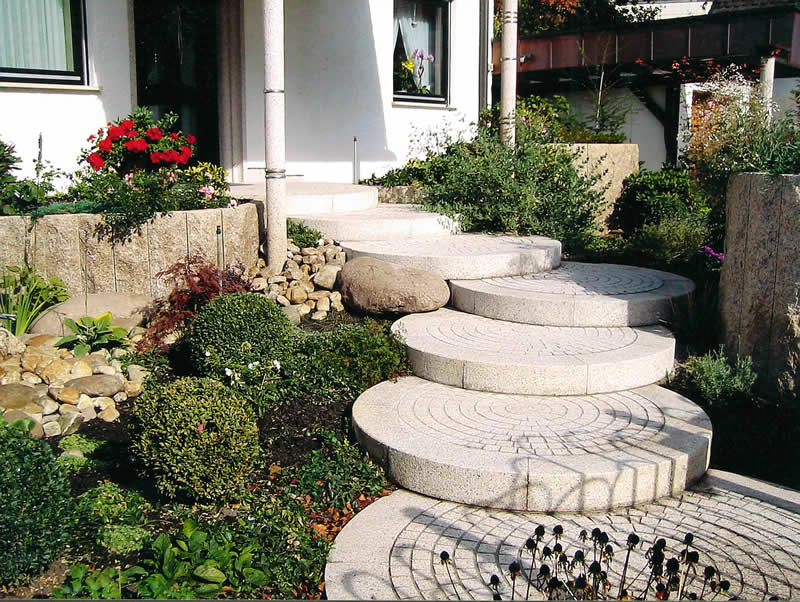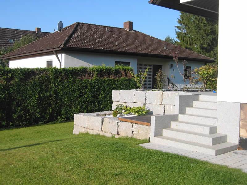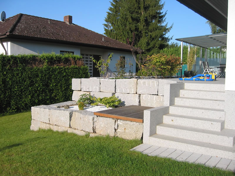 Granit - ein äußerst robuster und beständiger Baustoff - wurde schon seit jeher im Außenbereich verbaut.So findet er z.B. Anwendung als Blockstufen, Pflaster, Bodenbelag, Treppen, Mauern, und jeglichen Ideen, die Sie in Stein verwirklichen wollen.