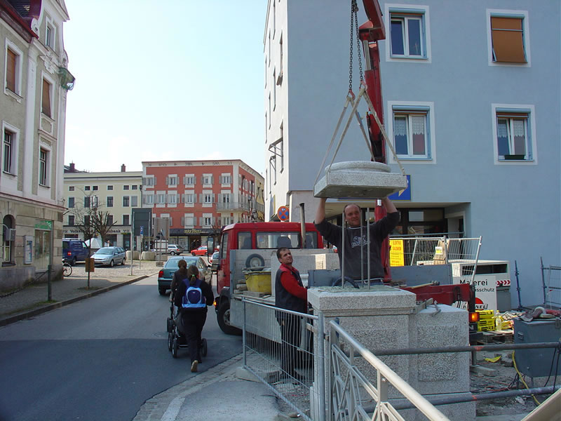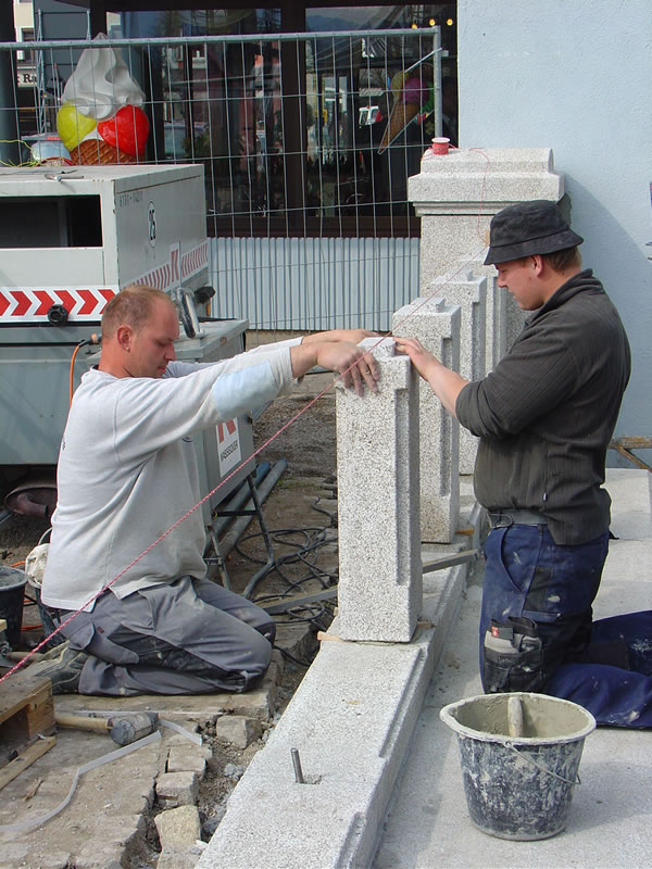 Galerie Montage öffnenIn der Verlegung von Naturstein können wir auf jahrelange Erfahrung zurückblicken. Diese Erfahrung und auch ein gewisses Gespür für den Werkstoff Naturstein sind von Nöten, um die oft mehrere hundert Kilo schweren Steinteile in ein anmutendes Ganzes einzufügen.