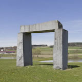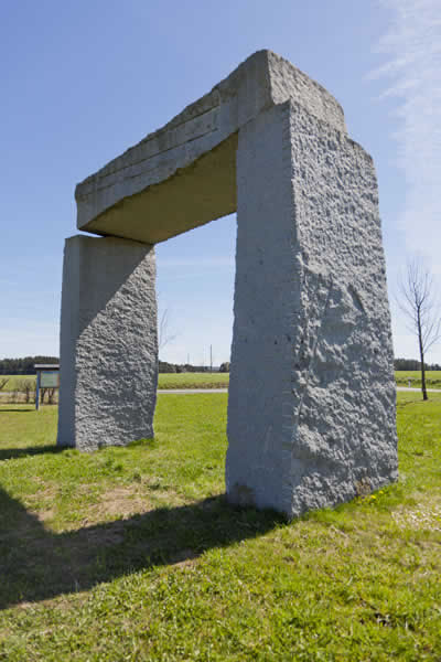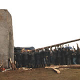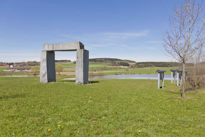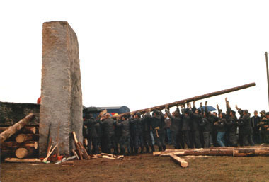 Mit 200 Helfern des Technischen Hilfswerks und aus den Reihen der Vereine des Gemeindegebiets konnte am 22. Okt. 1995 der Transport eines Granitquaders durch das Ziehen über Baumstämme nachgestellt werden. Anschließend wurde der Steinblock über eine schräge Rampe gezogen, damit er in die vorbereitete Grube kippen konnte, um dann in die Senkrechte gebracht zu werden.