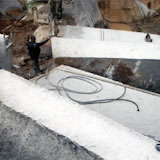 Zu diesem Vorhaben wurden in unserem Steinbruch drei Granitblöcke mit den Maßen 6 m, 1,8 m, 1,3 m und einem Einzelgewicht von rund 40 t gewonnen und zur Verfügung gestellt.